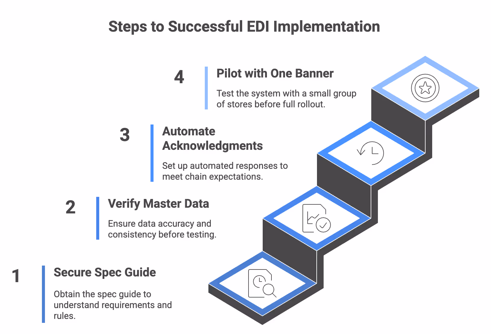 Implementing EDI isn’t rocket science. However, a few disciplined steps are needed to keep projects on track and chargebacks at bay: